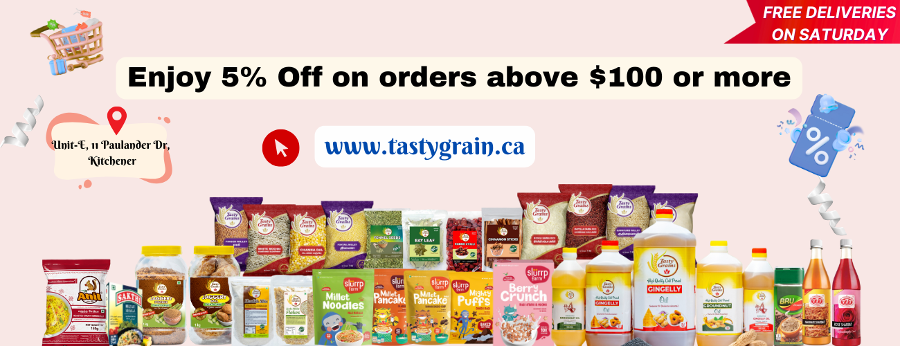 TastyGrains is the only importer and distributer of Native Food store Products in Canada. NFS millet cereal is gluten-free, preservative-free, and all-natural, making it an ideal choice for health-conscious individuals and families. Enjoy it with milk, yogurt, or smoothies for a quick, nutritious meal that tastes as good as it is for your body. Key Benefits: Rich in millets, nuts, and seeds Supports digestion and immunity...Regular price $6.00Regular priceUnit price / perSale price $6.00 -