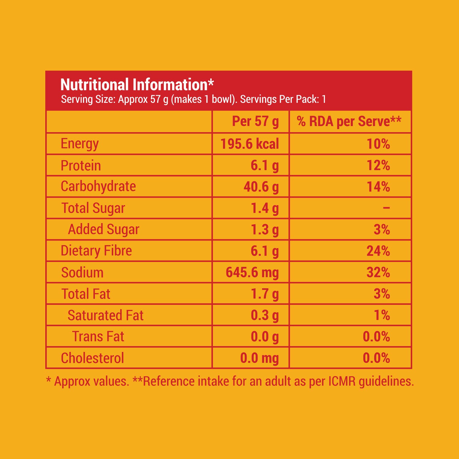 - Zero maida, preservatives, artificial colours or flavours, trans fat or cholesterol